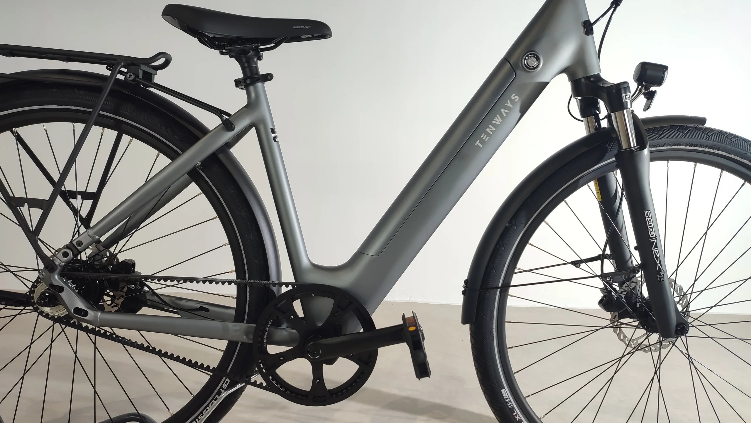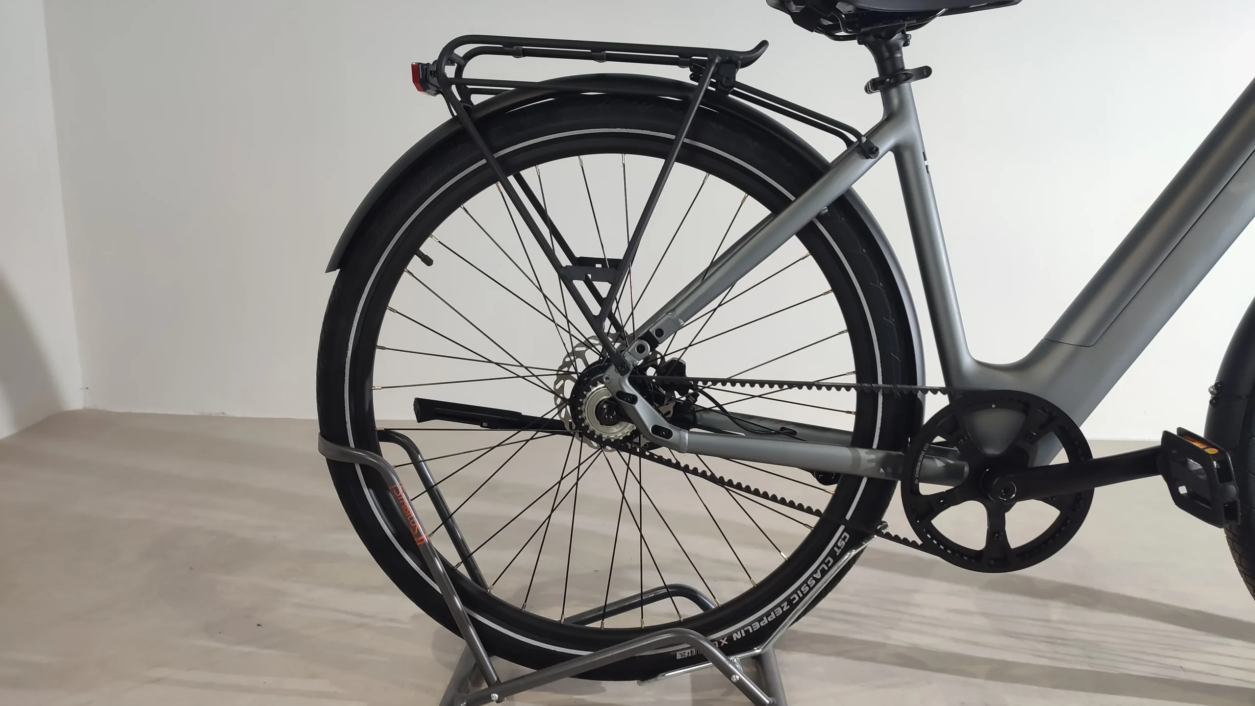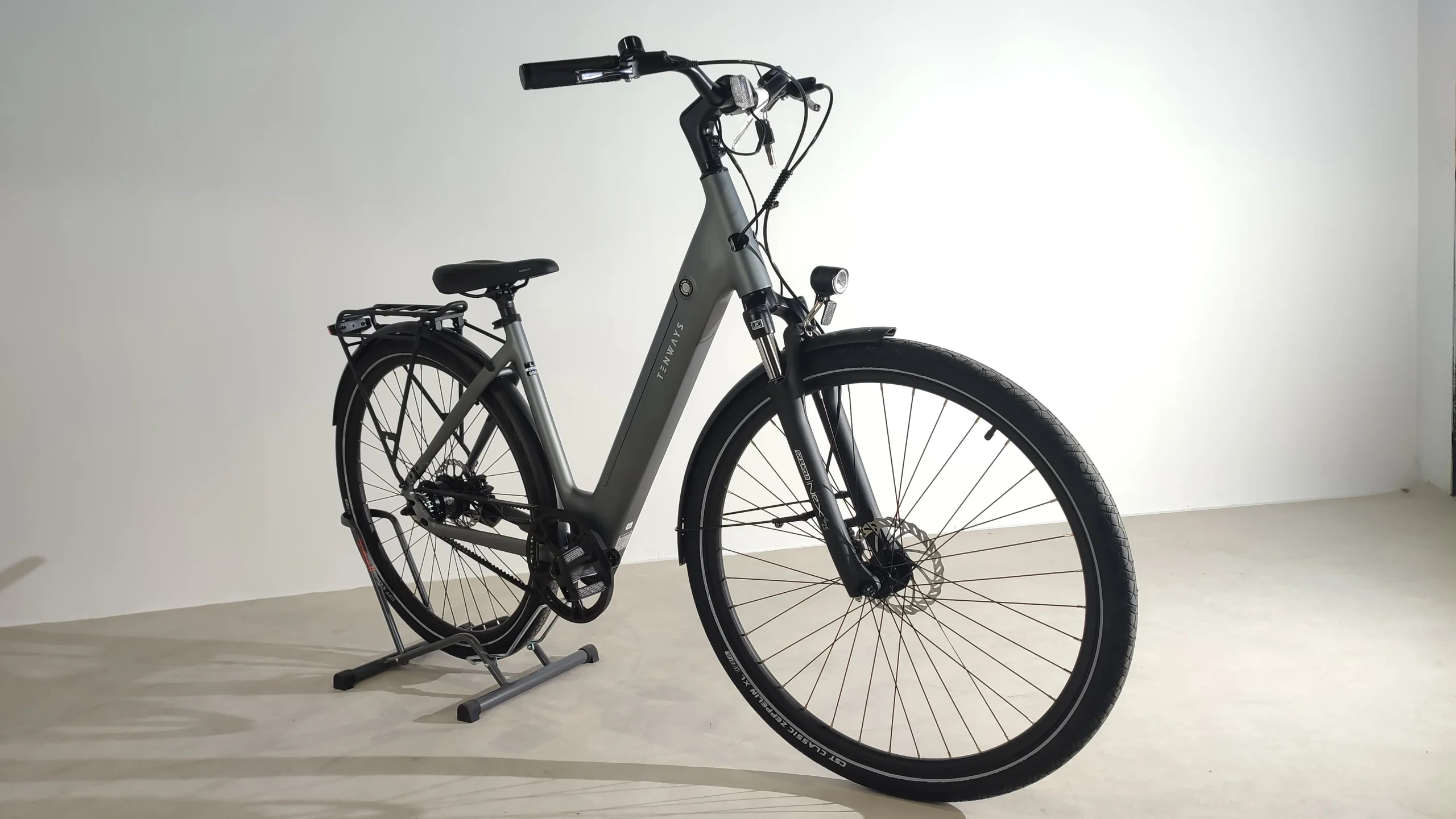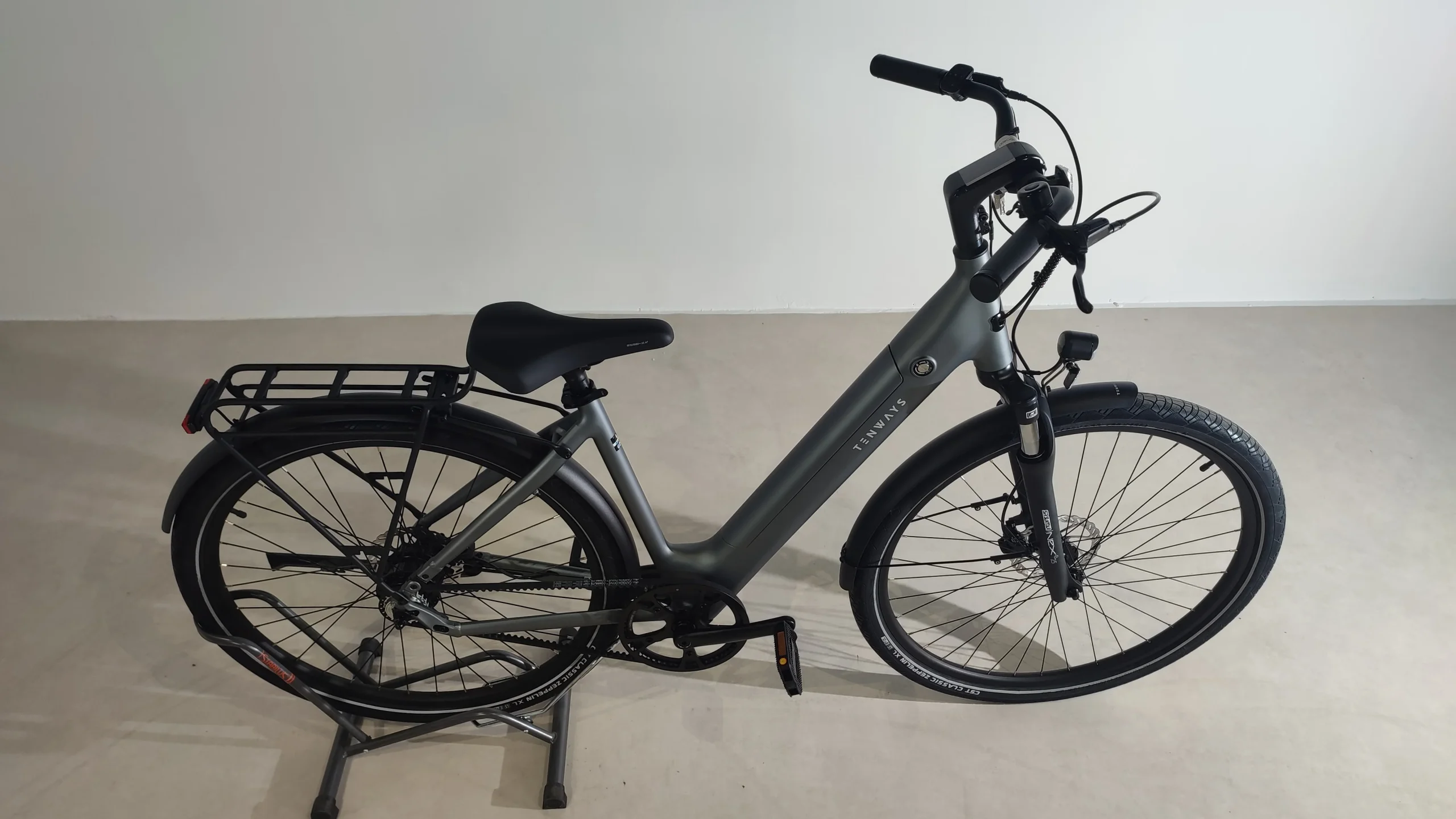 Le vélo est livré avec un porte-bagage et des garde-boue.