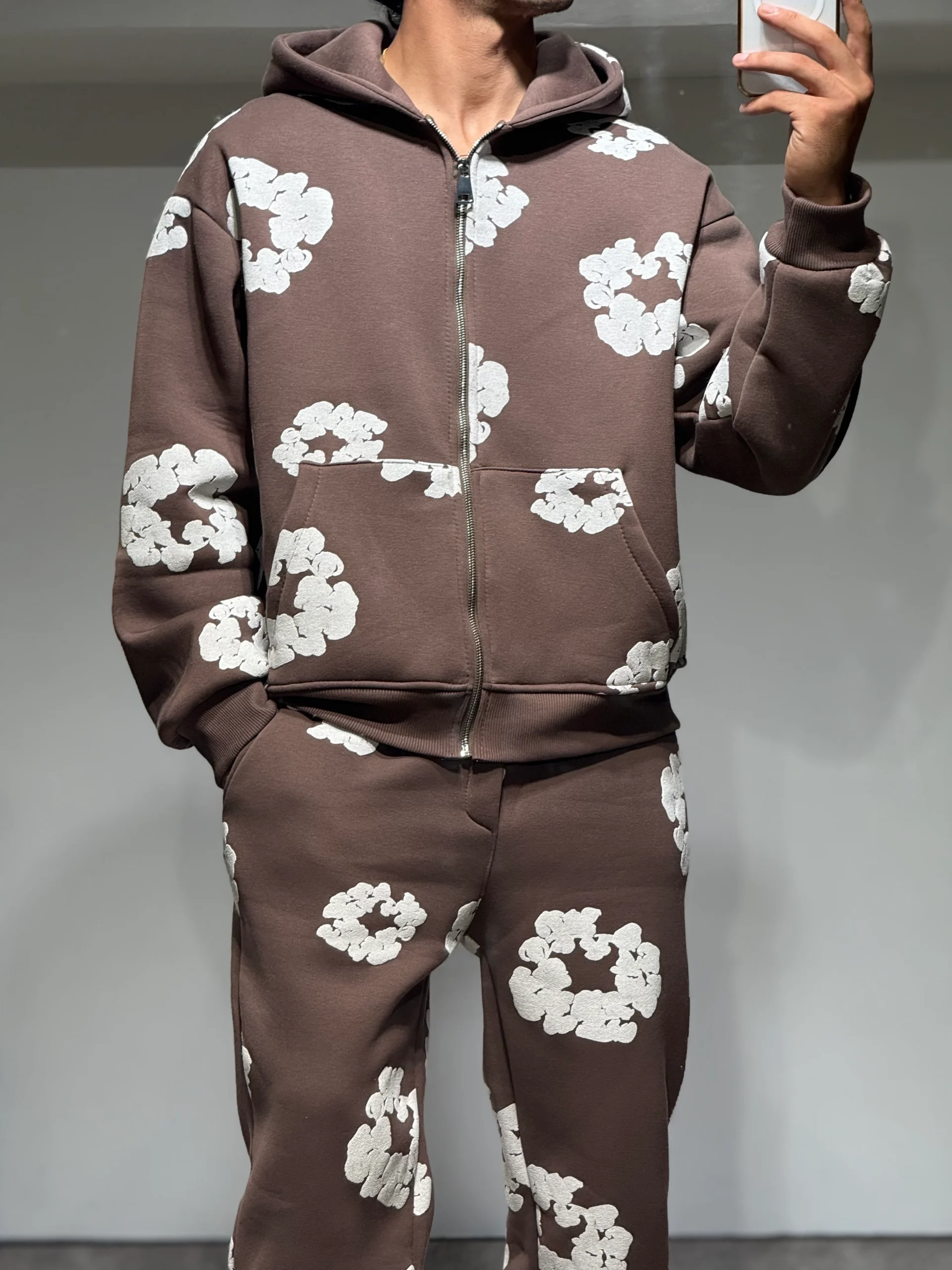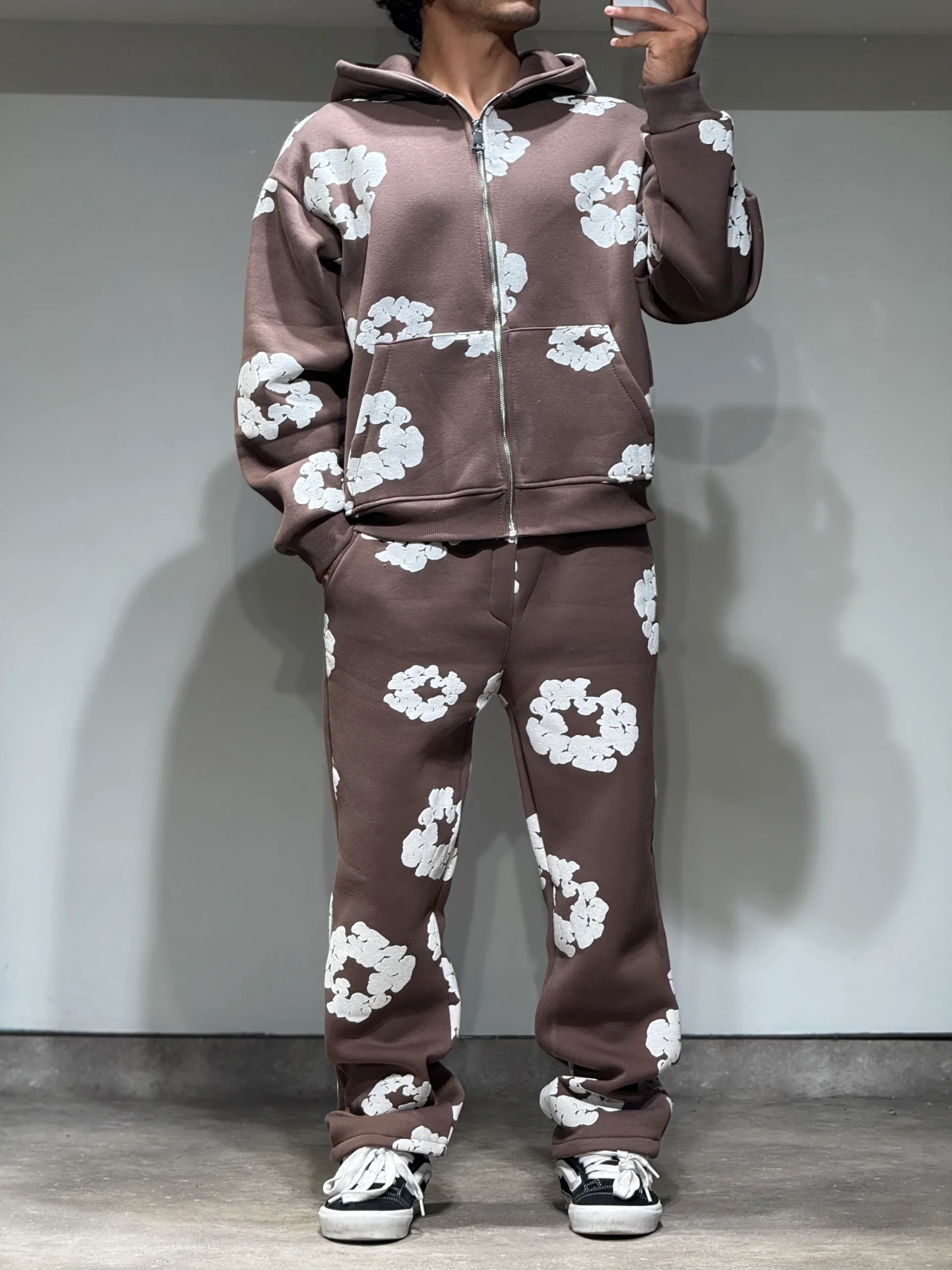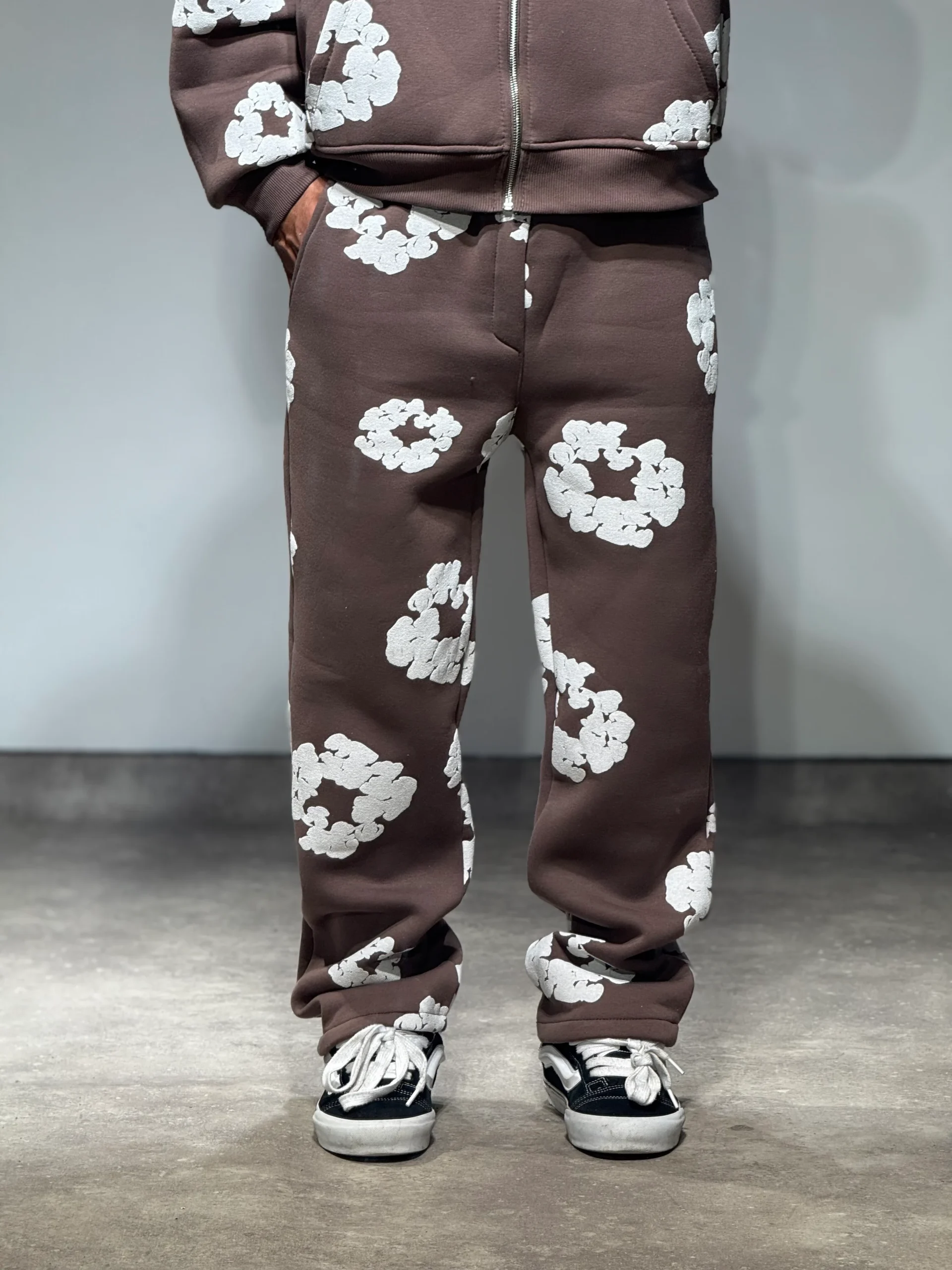 Ensemble Veste et Pantalon Jogging à Fleurs Choco et Blanc