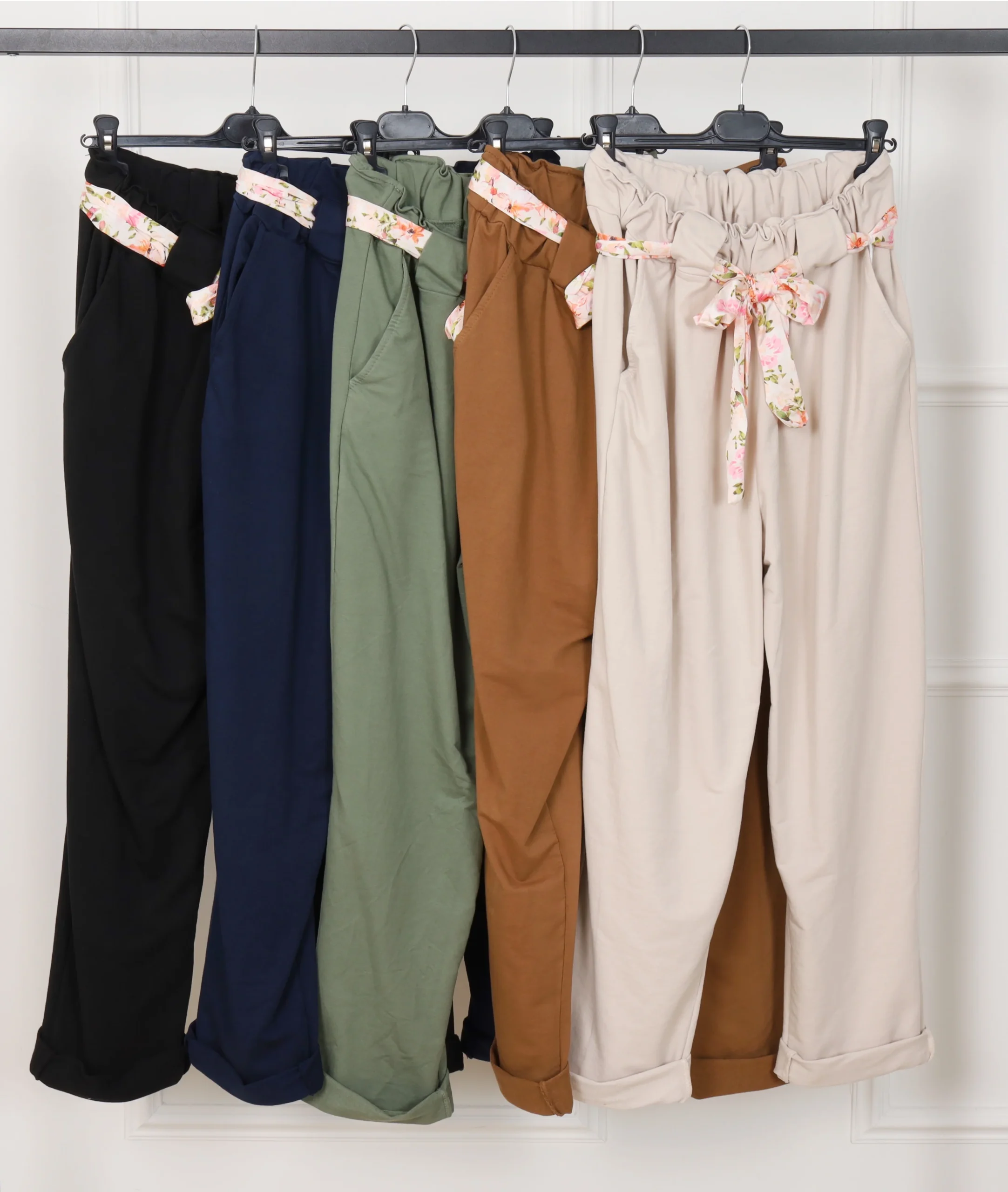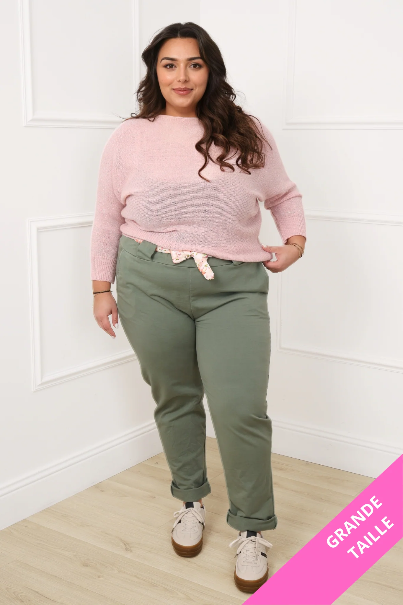 Pantalon Grande taille uni ceinture fleur