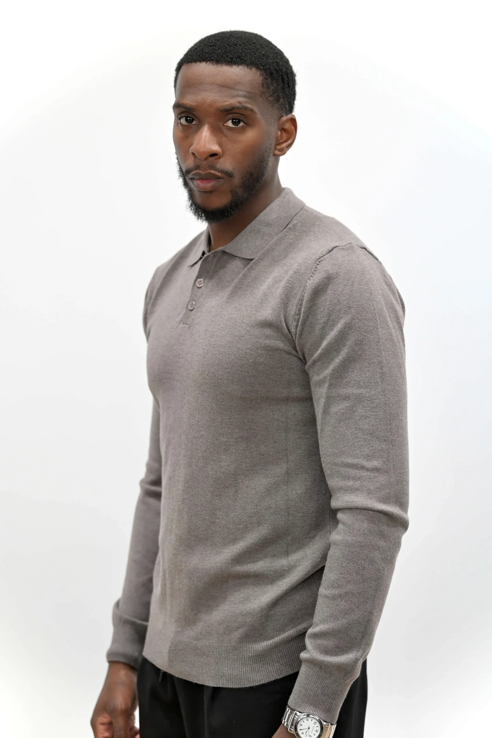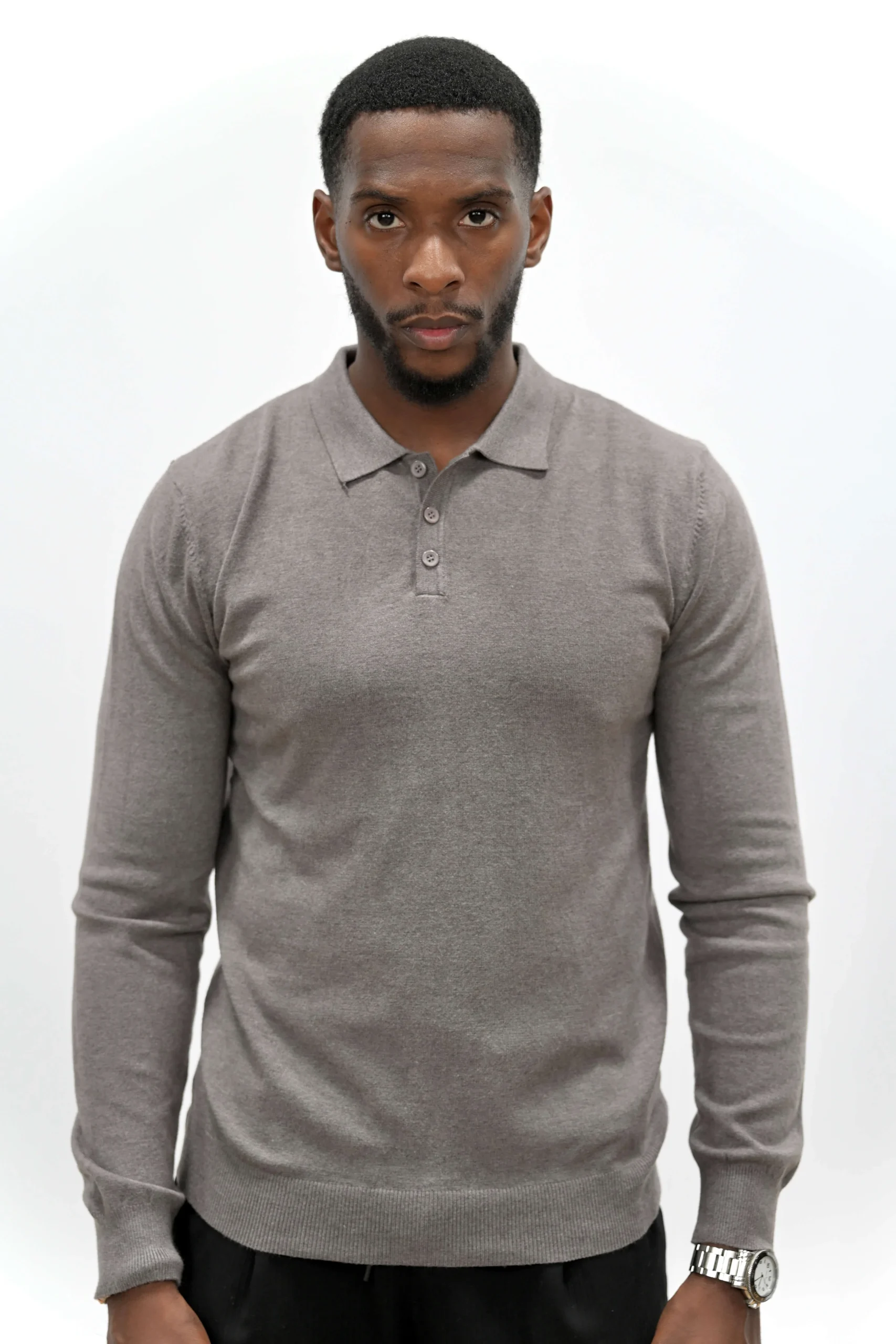 Pull Col Polo Beige Foncé